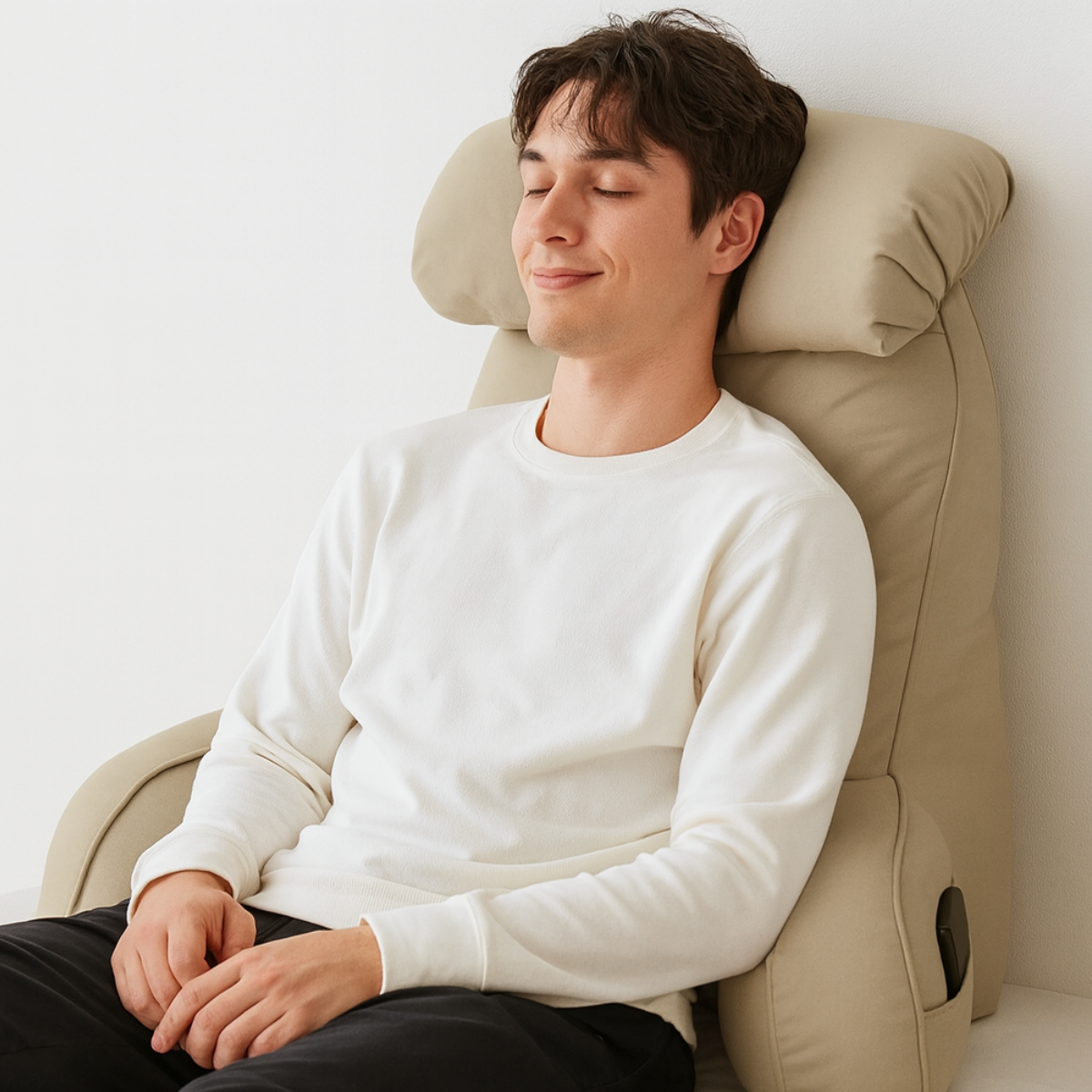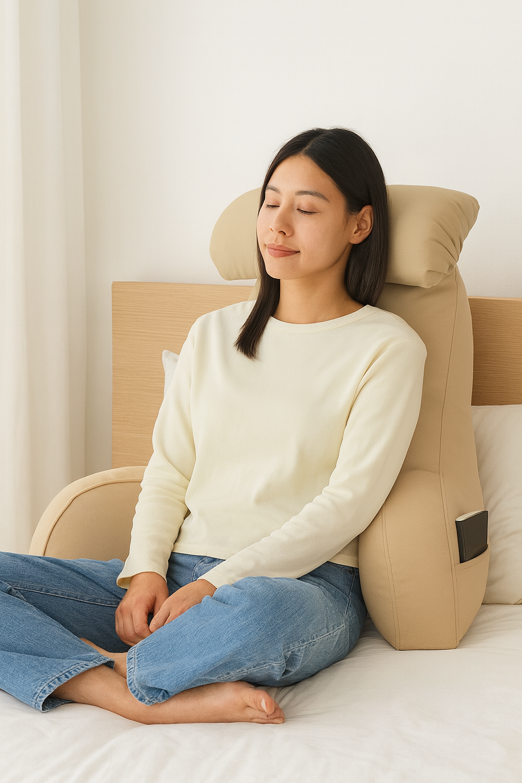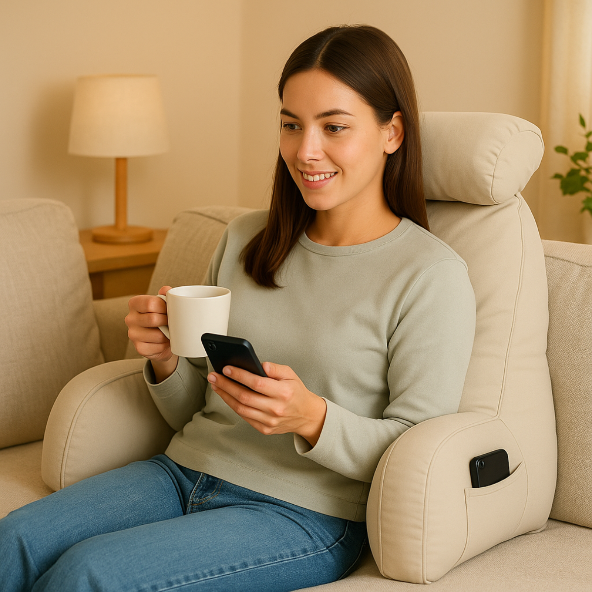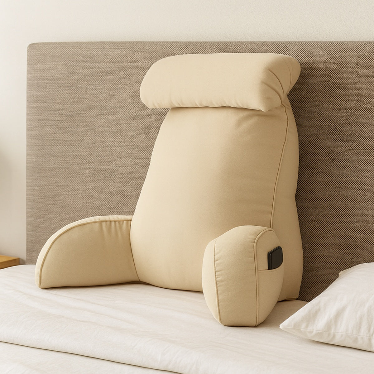 Disfruta de un respaldo firme y cómodo con este cojín de diseño envolvente, ideal para leer, descansar o trabajar desde la cama o el sofá. Su relleno de memory foam se adapta a tu espalda para brindar el máximo soporte lumbar y cervical.